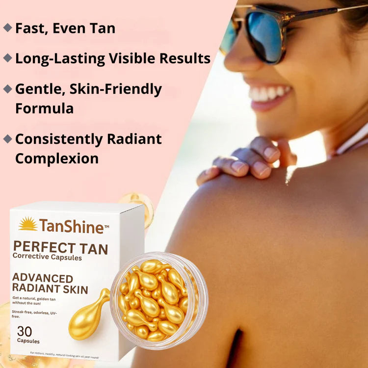 Het resultaat? Een egale, stralende huid – zonder zon, zonder vlekken, zonder oranje tinten. Voel je elke dag zelfverzekerd met je gezonde huid dankzij TanShine™, je schoonheidsproduct dat je van binnenuit een natuurlijke glans geeft.